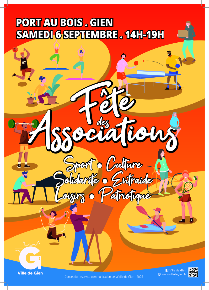 Venez nombreux à la Fête des Associations de Gien, un rendez-vous incontournable pour découvrir la richesse et la diversité du tissu associatif local ! Tout au long de la journée, plus de 100 associations seront présentes pour vous faire découvrir leurs activités, partager leur passion et accueillir vos envies d’engagement ou de loisirs.