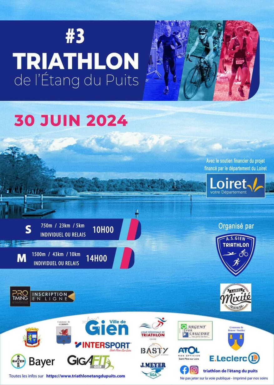 Le Triathlon de l'étang du puits c'est déroulé le 30 juin 2024, cet événement sportif organisé par l'AS Gien Natation section Triathlon a vu se défilé presque plus de 600 participants qui ont relevé le défi sur deux courses mêlant les pratiques de la natation, course à vélo et course à pied, le tout géré par une organisation de pointe, l'un des membres organisateur Bruno nous retrace cette journée joviale mêlant performance sportive et l'importance des bénévoles en cette journée d'envergure.